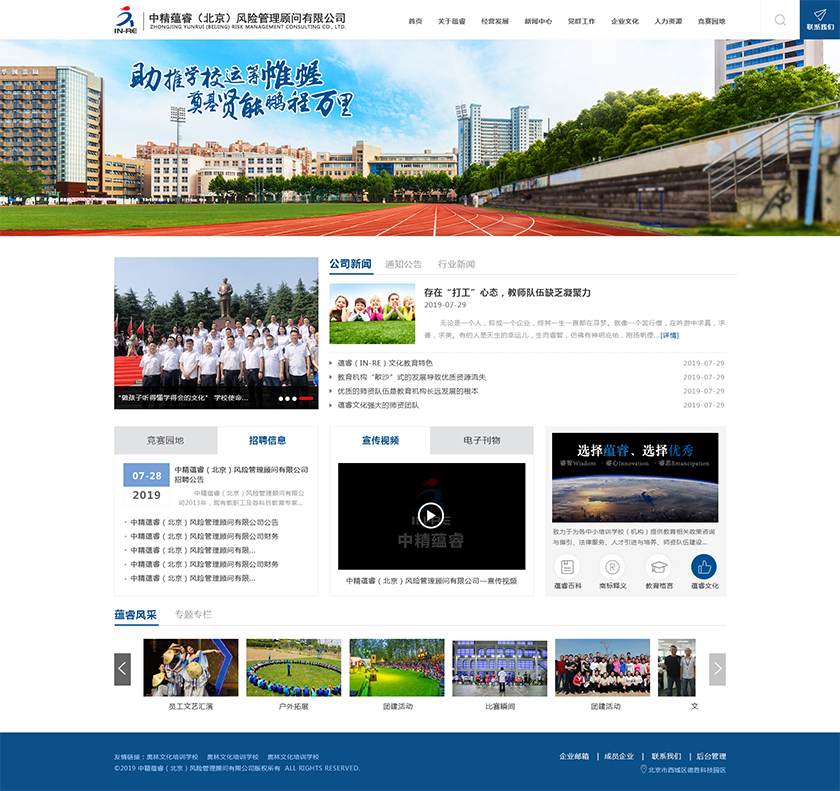 Project Description 中精蕴睿(北京)风险管理顾问有限公司2013年,现有教职工及各科目教育专家80多人,致力于为各中小培训学校(机构) 提供教育相关政策咨询与指引、法律服务、人才引进与培养、师资队伍建设与培训、教学教研与学科创新、市场营销企划、文化 理念塑造与品牌输出的专业化教育管理全方位的综合服务。 Official website address 安徽http://in-re.com/ I want to share